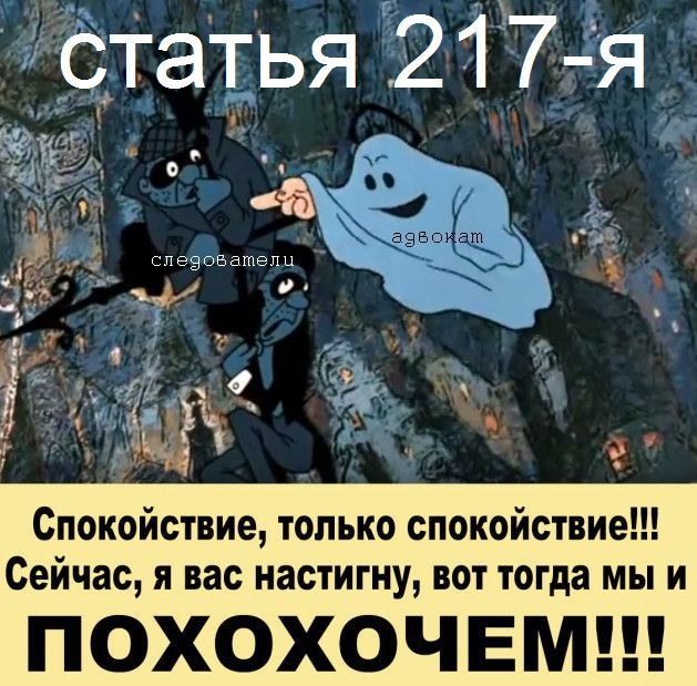 Уважаемый Олег Витальевич, как все знакомо. Кстати, на днях звонил следователь, который получил из суда дело. Делу два года, следствие — 11 месяцев, нужно быстро подписать 217-ю, сроки горят. Отправил ему честно стыренную у кого-то здесь картинку, пока больше не звонил: