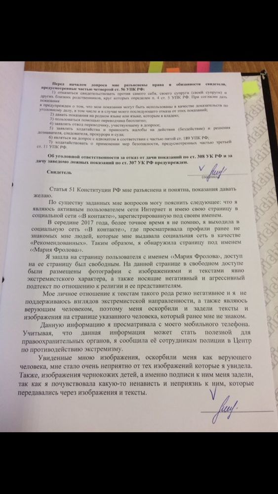 Уважаемый Андрей Борисович, тем не менее и вместе с тем. Я вот у второй показания тоже хотел выложить, какой-то глюк не позволил. Показания чуть ли не дословные. Я не очень себе представляю, как два разных человека могут одинаково (до запятых) оскорбляться от картинок :D