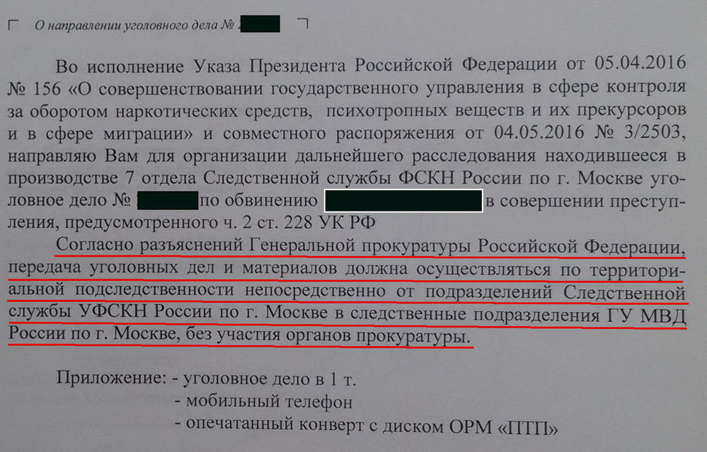 Вот попалось мне сейчас старое дело, которое при ликвидации Наркоконтроля было передано в полицию. Разумеется, я сразу же полез смотреть, как передавалось. Нисколько не удивился, увидев, что прокурор в этом участия не принимал.