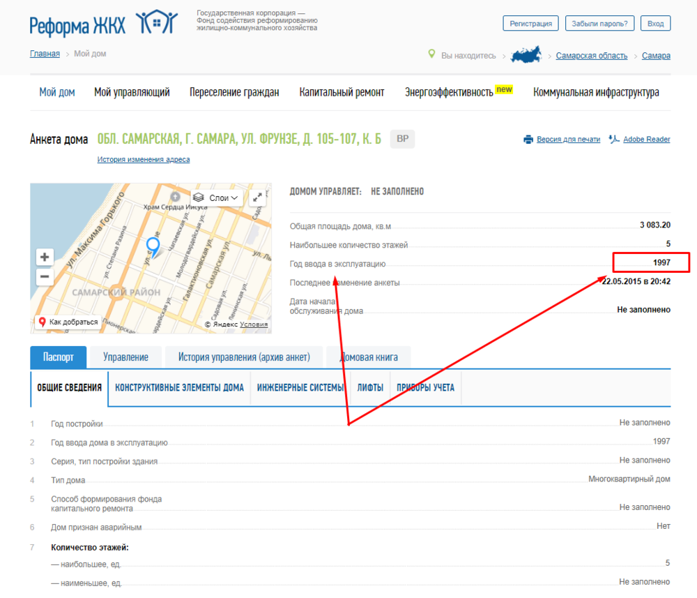 Также в данном постановлении указано, что «Исходными данными для формирования Перечня многоквартирных домов послужили: Технические характеристики многоквартирных домов, предоставленные органами местного самоуправления Самарской области, включающие дату ввода многоквартирных домов в эксплуатацию, их общую площадь, типы и материалы основных конструктивных элементов (фундаментов, фасадов, крыш, лифтового оборудования, внутридомовых инженерных систем) и годы завершения последнего капитального ремонта».