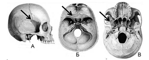 Рис. 2. Крыловидные отростки клиновидной кости.