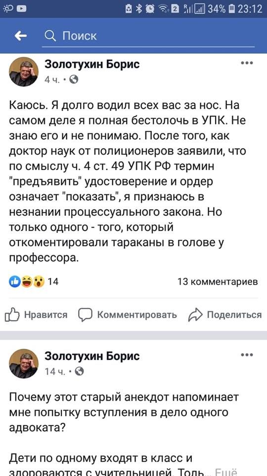 Из Facebook обращение к адвокату Золотухину Борису и ему подобным