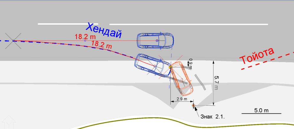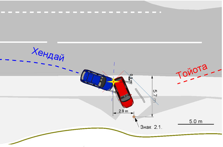 Рис.6. Расположение автомобилей Хендай и Тойота в момент столкновения.