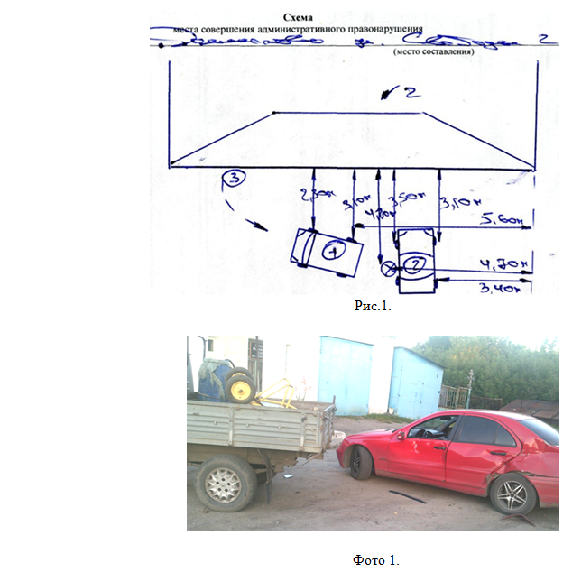 В распоряжение эксперта, среди других материалов, была предоставлена схема ДТП (рис.1.) и, по запросу эксперта, фотоизображения с места ДТП.