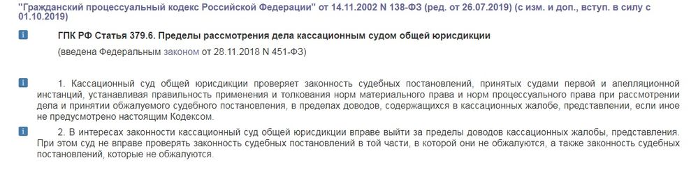 При этом так же я возразил коллегам, что стороны в процессе никем не лишены права в кассационной жалобе не согласиться с судебными актами и первой и апелляционной инстанции. Даже если вы сошлётесь на мнение наших соседей по Галактике и попросите прямо в кассационной жалобе привлечь их к участию в деле , но при этом ваша кассация имеет надлежащую процессуальную форму и соблюдает все требования к кассационной жалобе — её обязаны принять и рассмотреть всё, в ней изложенное (каким будет решение кассации — вопрос другой).