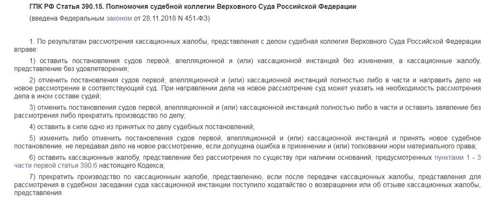 К вопросу о полномочиях кассационного суда общей юрисдикции после «судебной реформы» — ч.1 ст. 390 ГПК РФ