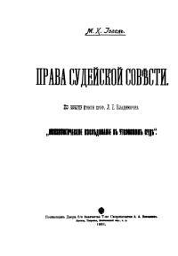 «То, что называется «судейскою совестью», есть сила, поддерживающая судью и вносящая особый, возвышенный смысл в творимое им дело. С ее голосом надо считаться, под угрозою глубокого душевного разлада с собою»