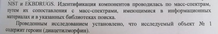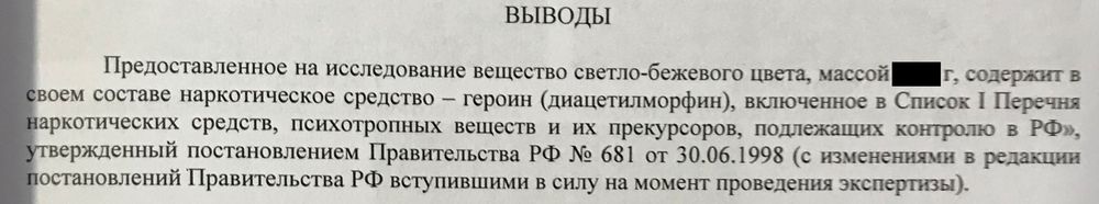 Уважаемый Егор Владимирович, в исследовании и заключение эксперта, в выводах, было указано, что данное вещество — героин.