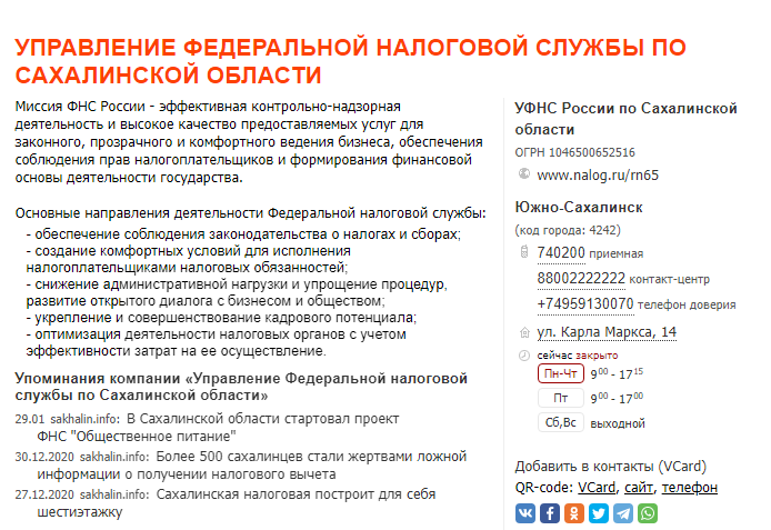 Всё это я изложила налоговикам и отправила не только в «свою» инспекцию, но и в УФНС по Сахалинской области, так сказать, для сведения и контроля.