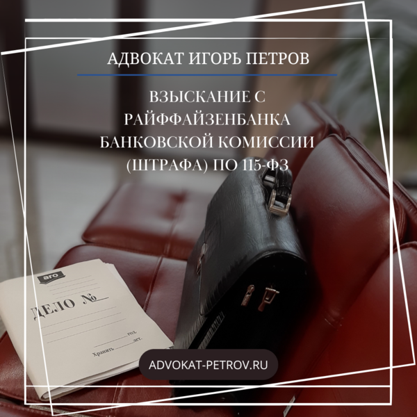Результат работы адвоката по делу о взыскании комиссии (штрафа) по 115-ФЗ
