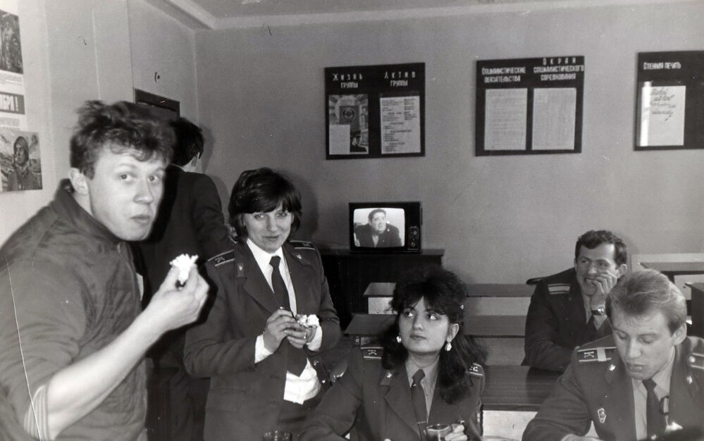 Вчера пацаны фотку прислали. Это 23 февраля 87 или 88 г. Мы в кухонном наряде были, прибежали пирожных поесть, посему я не по форме ;)))