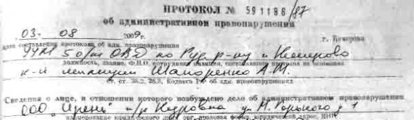 Описание ситуации есть в прилагаемых процессуальных документах, а свидетельства участников и очевидцев прекрасно отражены в телевизионном сюжете, показанном губернским телеканалом "СТС-Кузбасс":