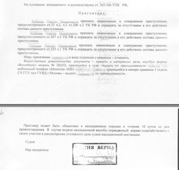 Вызвали. Допросили. Изымали. Осматривали. Был ноутбук! Внутри — практически «чистосердечное признание»! Нестыковки — техническая ошибка. Вот так технические ошибки, которые меняют всю суть дела, как всегда надеялись, что прокуратура и суд доработает, вытянет обвинение, но нарвались на грамотного и порядочного судью.