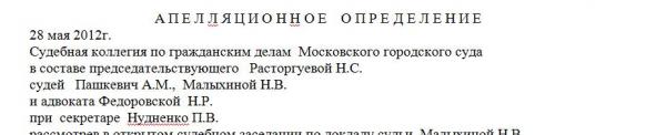 Я не согласилась с таким выводом суда и обратилась в Мосгорсуд с кассационной жалобой. Ответчики тоже подали кассационную жалобу.