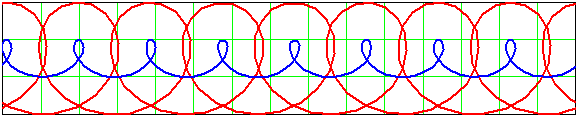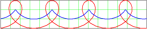 Ну а если вторая машина стоит, то узор от нашего колеса будет таким, как ниже на рисунке. Именно такие траектории описывают части вращающегося колеса в пространстве.