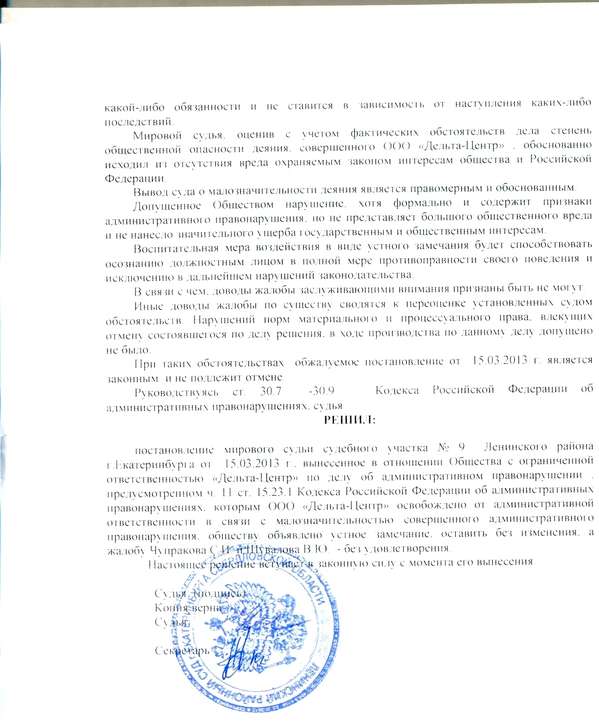 Сегодня получил решение апелляционной инстанции от 19 апреля 2013 года, которым постановление мирового судьи оставлено без изменения, а жалоба потерпевших — без удовлетворения. Есть правосудие!
