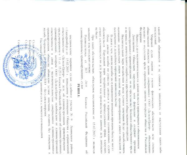 Уважаемый Григорий Яковлевич, замечательная работа! Именно Ваша речь привела судью к убеждению о том, что это деяние общества малозначительное. БРАВО!