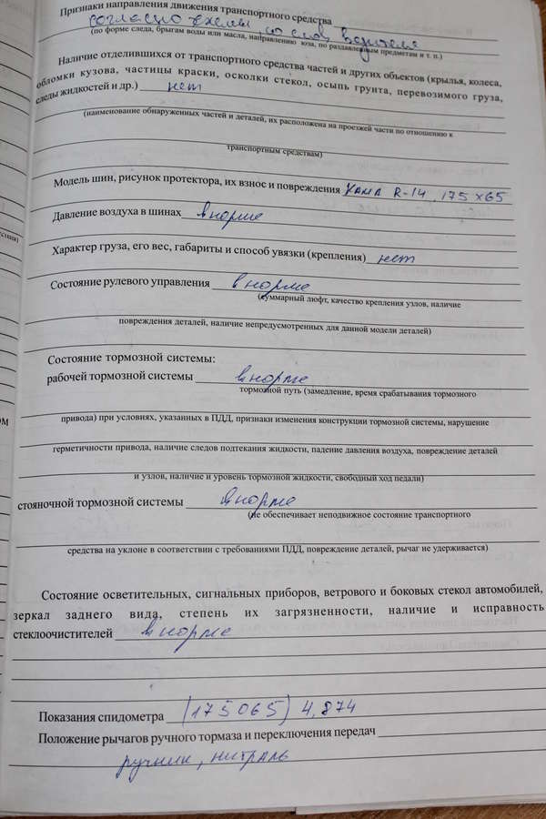 — отсутствуют координаты начала и окончания следов торможения по отношению к границам проезжей части, что лишает возможности определения величины поперечного смещения автомобиля при его отвороте;