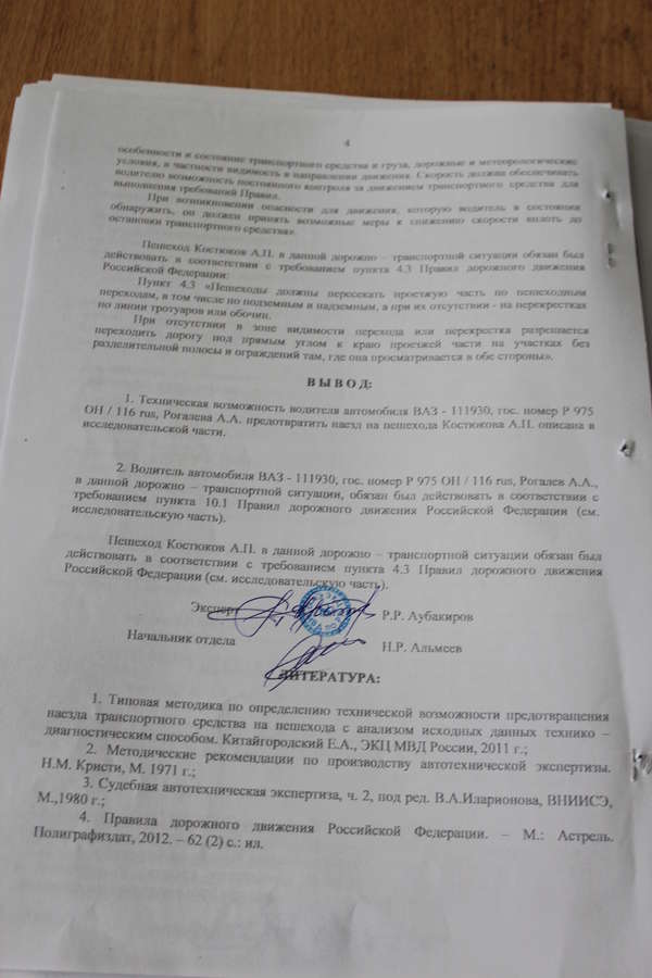 В данном конкретном случае основанием для возбуждения уголовного дела по ст. 264 УК РФ, являются, нарушение правил дорожного движения и эксплуатации транспортных средств, повлекшие причинение тяжкого вреда здоровью, смерть одного или нескольких лиц, а также наличие причинной связи между фактом нарушения и наступившими последствиями. Но в постановление следователя отсутствует указание на то что имело место нарушение ПДД, следовательно, состав преступления отсутствует. Однако суд в постановлении не дал оценку этому обстоятельству.