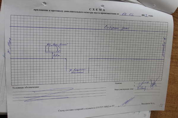 … схема и протокол составлены из рук вон и в них не достаёт следующей информации, которая, несомненно, имеет весомое значение для возможности решения многих вопросов по ситуации, а именно: