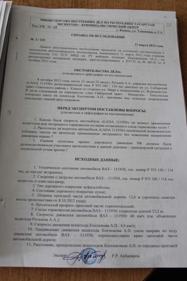Выкладыва постановление суда по 125 УПК, собираюсь обжаловать, автотехническое исследование не приобщили.