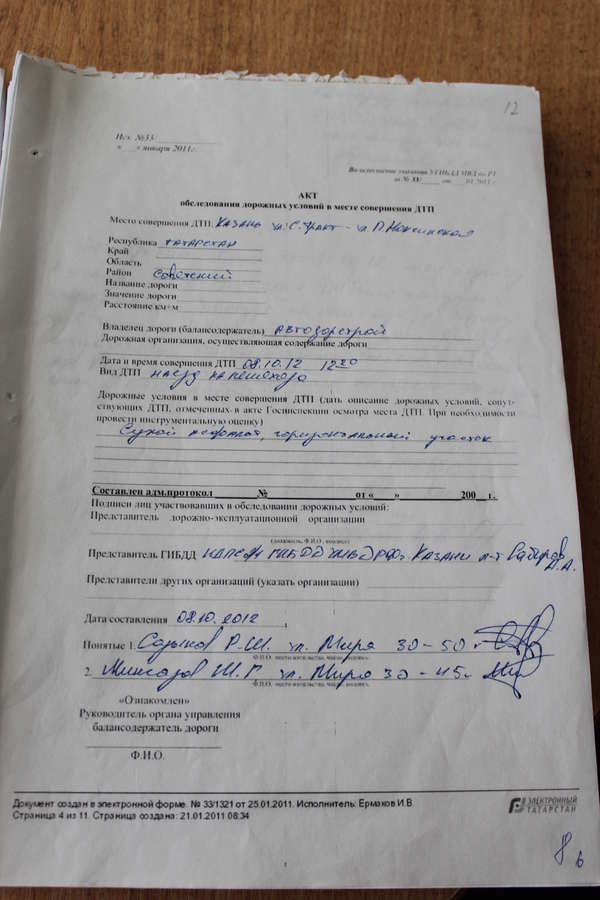 Так же прилагаю акт осмотра дорожных условий