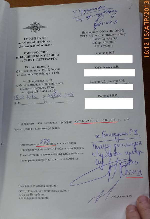В суде в декабре 2015 года начальник 39 ОП п. Металлострой подполковник полиции Шкурко В.В. жаловался, что вообще для конвертации и конвертирования (так и сказал) документов, для отсылки заявителям постановлений, просто нет конвертов.