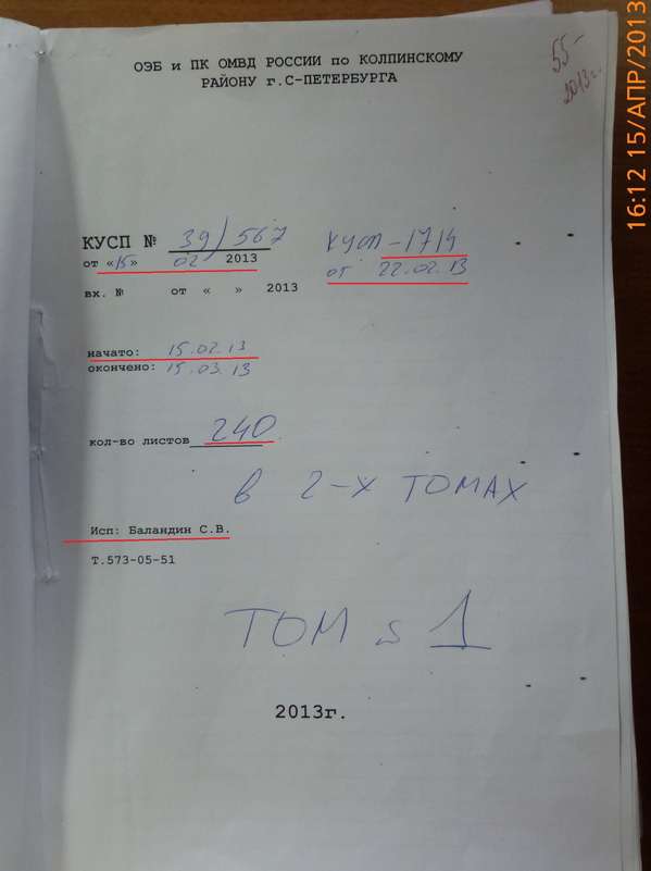 На сегодня наше КУСП -39/567 от 15.02.2013 года уже составляет 16 томов, в среднем по 250-270 листов !!!