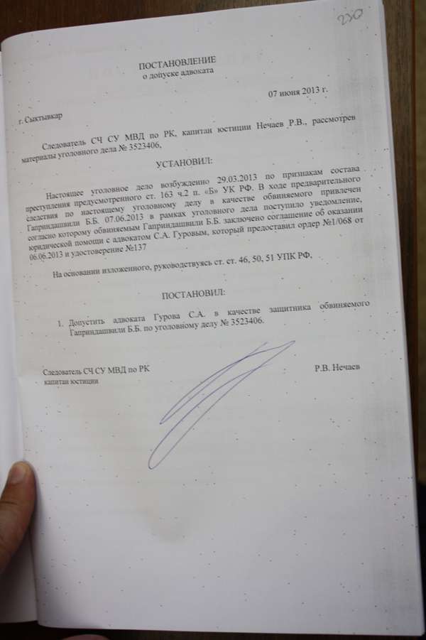 Занесла меня адвокатская судьба в Республику Коми. Красивейший таежный край. Столица — город Сыктывкар. Жемчужина (по общему мнению местного населения) — город Ухта. Ухтинский городской суд Республики Коми. Обвинение — п. «б» ч.3 ст. 163 УК РФ. Но сейчас не об этом. Речь пойдет исключительно о процессуальных моментах. О