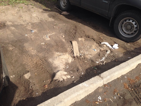 судя по фотографиям, могу предположить, что именно благодаря паркующимся авто газон приобрел сей плачевный вид.