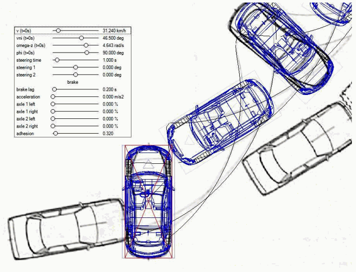 В первом столбике таблички – Тойота, во втором – Мазда. Но, отличие от минского эксперта Лобана, там где у эксперта Горчакова табличка, нет движения машин, а где есть движение – нет таблички. Не зря на Праворубе говорится «Зачем адвокату EES?». Проверим?Копируем картинку из заключения эксперта Горчакова на рабочий стол другой программы Virtual Crash, масштабируем и решаем задачу движения Мазды. Полученное решение совпадает с решением эксперта Горчакова. Значит эксперт Горчаков эту часть задачи действительно решал. Точнее, он что-то решал. Но что-то – это не совсем то самое, а может быть, и совсем не то самое.