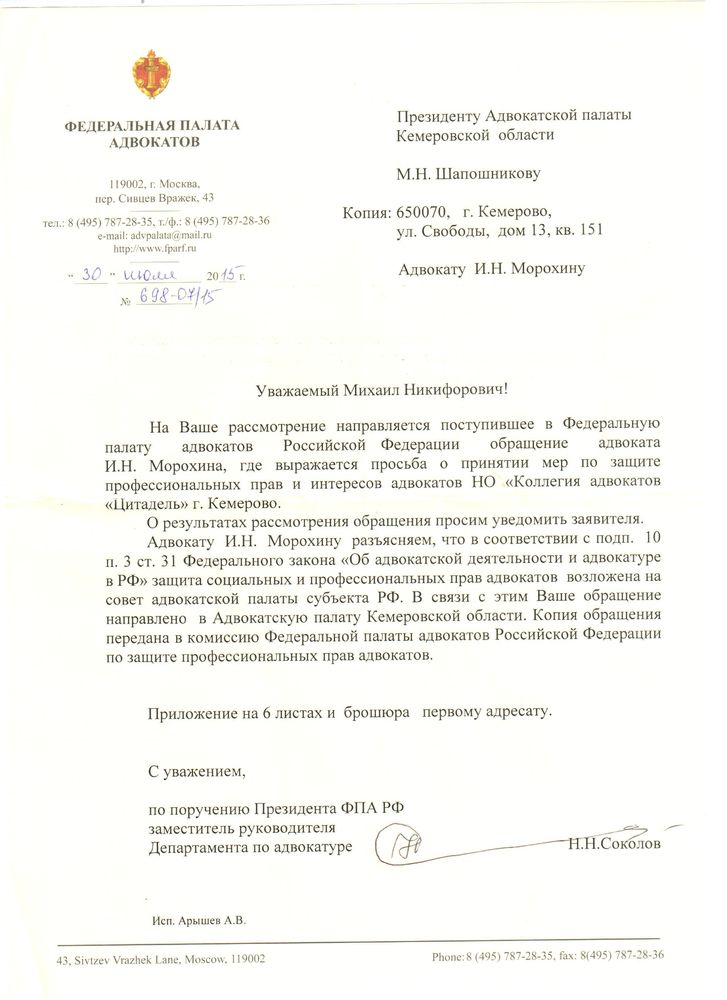 Сегодня, 7.10.2015 г., получил по почте чудесный ответ из ФПА, на своё уведомление от 20.07.2015 г. О нас помнят ;)