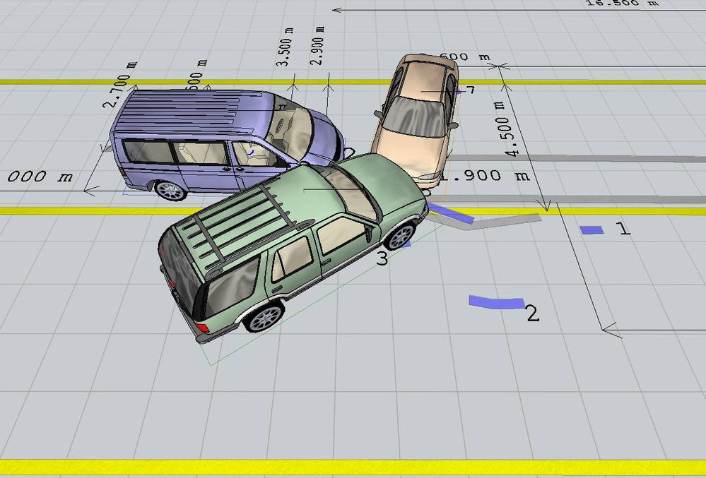 Когда это дело попало нам с Валерием Кимовичем Халиковым, мы решили ограничится только составлением масштабной схемы ДТП, трехмерной, с тщательно нанесенными всеми следами на месте ДТП, как зафиксированными кармаскалинскими пинкертонами, так и теми, которые видны на их же фотографиях.