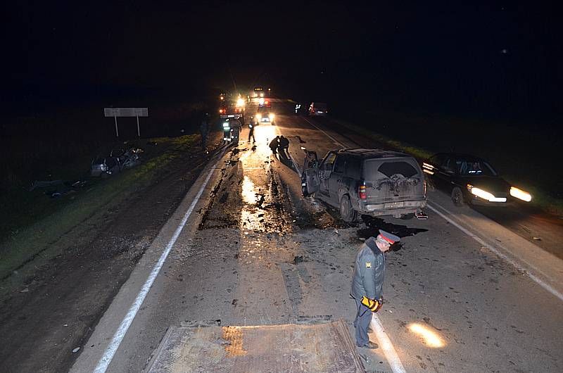 Ночью, в сильном тумане, по трассе недалеко от Уфимского аэропорта, под управлением нетрезвого водителя движется огромный джип Шевроле GTM 820. Навстречу ему, в аэропорт – ВАЗ-21110, на борту водитель и три пассажира. В результате лобового столкновения все в ВАЗе погибли, машины встали носом друг к другу, перекрыв дорогу.В это время из аэропорта двигался Хундай Гранд Старекс, а это – микроавтобус, почти целая Газель. Какой русский не любит быстрой езды? И, как всегда, водитель Хундая увидел в тумане стоящие Шевроле и ВАЗ в последние секунды, когда тормозить уже было поздно. Пришлось бить оптимально – в середку между Шевроле и ВАЗом, как показано на рисунках ниже (зеленый – Шевроле, синий – Хундай, оранжевый – ВАЗ).