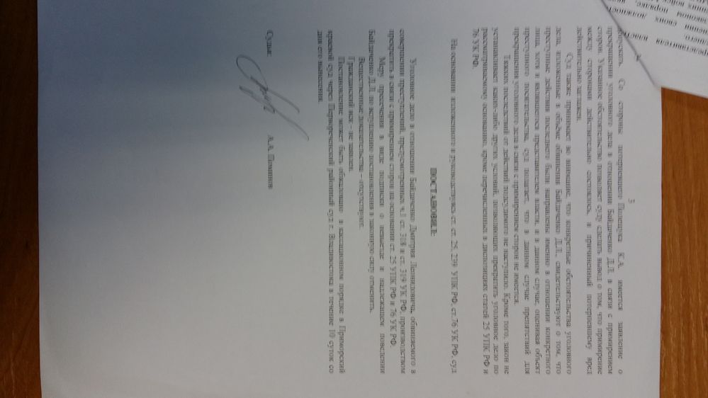 дело 5-летней давности, но… акцент суда был на то, что мой действия моего подзащитного были направлены в отношении конкретного лица, хоть и являющегося представителем власти и, оценивая предмет преступного посягательства, суд полагает, что в данном случае препятствий для прекращения уголовного дела в связи с примирением сторон не имеется