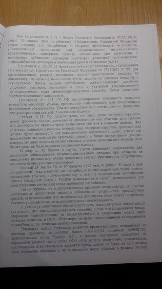 Данное дело осложнялось лишь одним, отсутствие договора хранения ТС и чеков на оплату услуг автостоянки за последние два дня, поэтому были заявлены исковые требования о признании договора хранения ТС заключенным, расторжении договора хранения ТС, взыскании материального ущерба, судебных расходов и компенсации морального вреда.