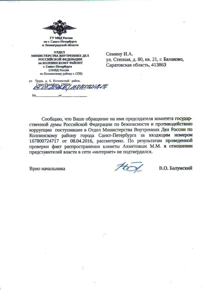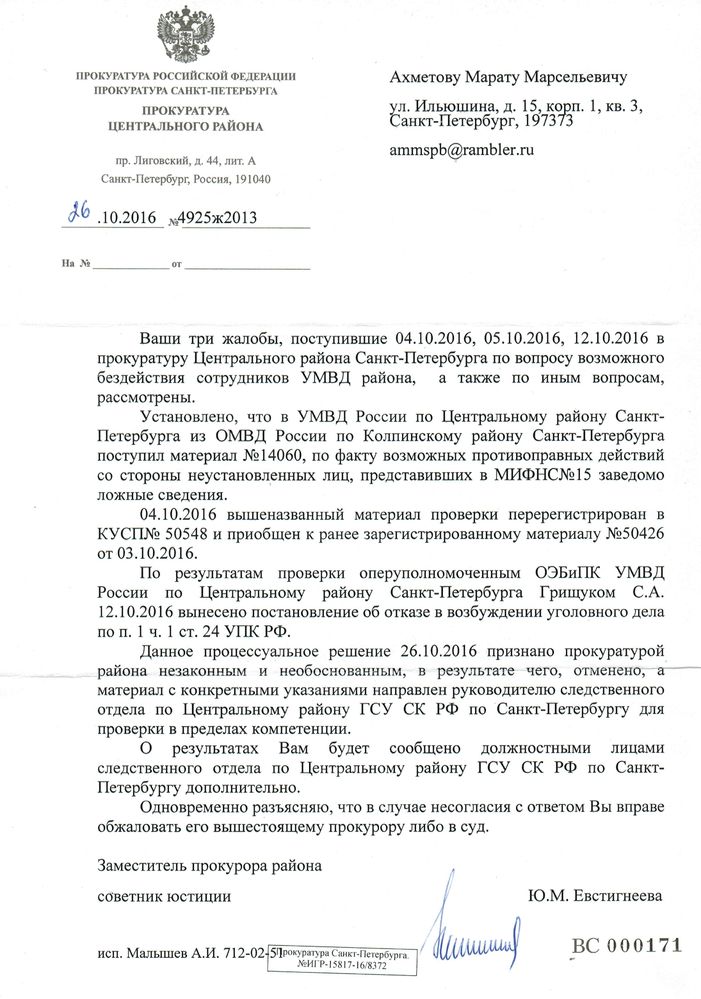 Не хочу и не люблю выносить все на показ. Как получу отписку из ген. прокуратуры вам напишу на электронную почту, если не возражаете.