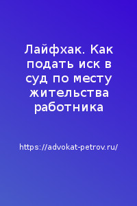 Подготовив иск о восстановлении трудовых прав работника, отправляю работника в суд по месту его проживания.