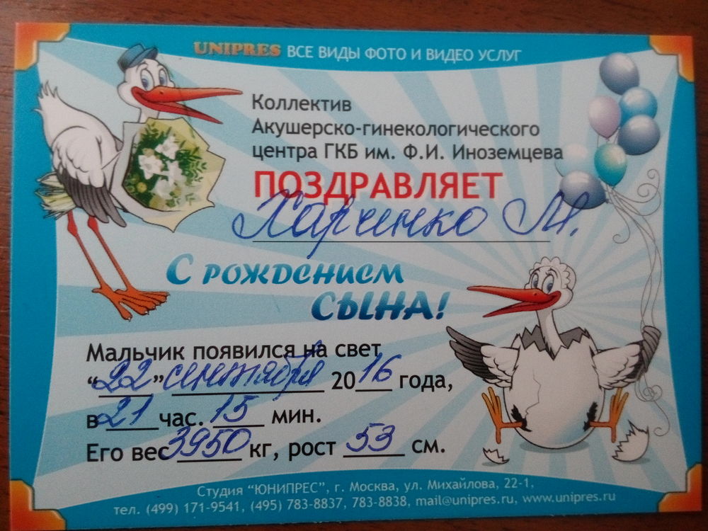 Уважаемый Вадим Петрович, Вы молодец! Поздравляю с рождением еще одного сына и желаю ему и его брату расти при маме и папе счастливым, здоровым и удачливым.