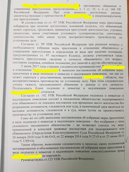 При рассмотрении жалобы адвоката в порядке ст. 125 УПК РФ о незаконности избрания в отношении подзащитного меры пресечения в виде подписки о невыезде и надлежащем поведении, суд, как водится, отказал в удовлетворении жалобы, указав, что следователь правомерно и в рамках своей компетенции вынес соответствующее постановление.