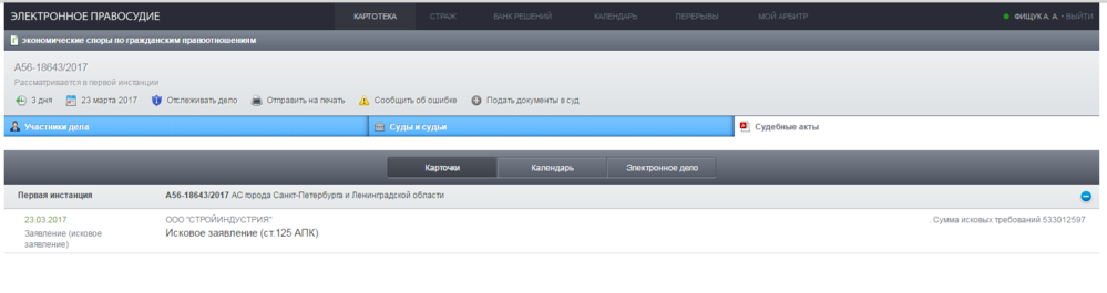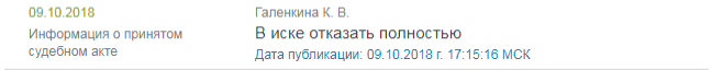 И вот, 09.10.2018 в картотеке Арбитражных дел появляется отметка о принятом судебном акте: