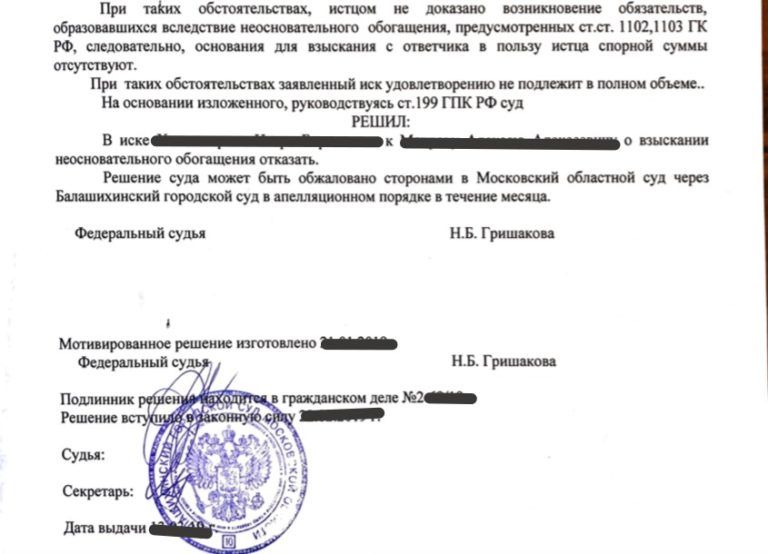Часто клиенты обращаются к адвокатам с просьбой защитить их от необоснованных исков. В моей адвокатской практике был подобный случай. Ко мне обратился молодой человек, у которого пытались взыскать неосновательное обогащение.