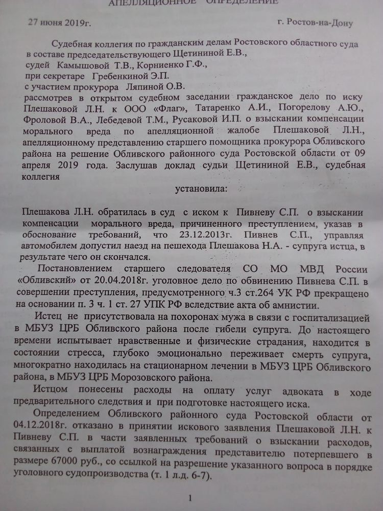 клиент принес решение из Ростовской области по иску супруги погибшего пешехода взыскано 1000000 руб. морального вреда. А можно узнать реквизиты судебного акта или цитату из него?
