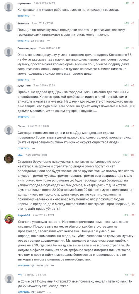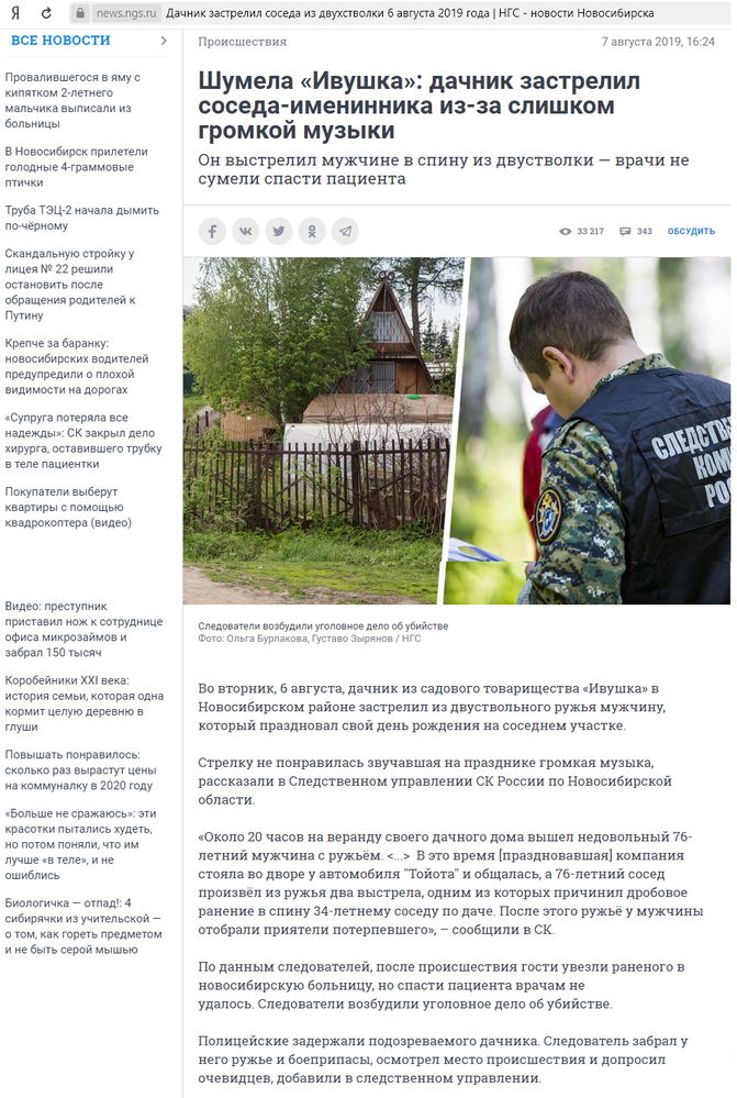 Под трагическим совпадением имел в виду ситуацию, когда 6 августа 2019 года, за несколько дней до заседания в апелляции, 76-летний житель новосибирского СНТ «Ивушка» выстрелил в 34-летнего соседа, который активно праздновал день рождения. Это было около 8 вечера, то есть, в период времени, не охваченный законом. Считаем, что это резонансное происшествие повлияло на выводы суда. В комментариях больше половины жителей выразили сострадание к деду — эти комментарии мы тоже приложили к иску в дальнейшем.