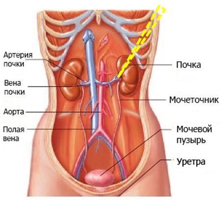 — Какого уровня в левой почке достигло острие клинка ножа?