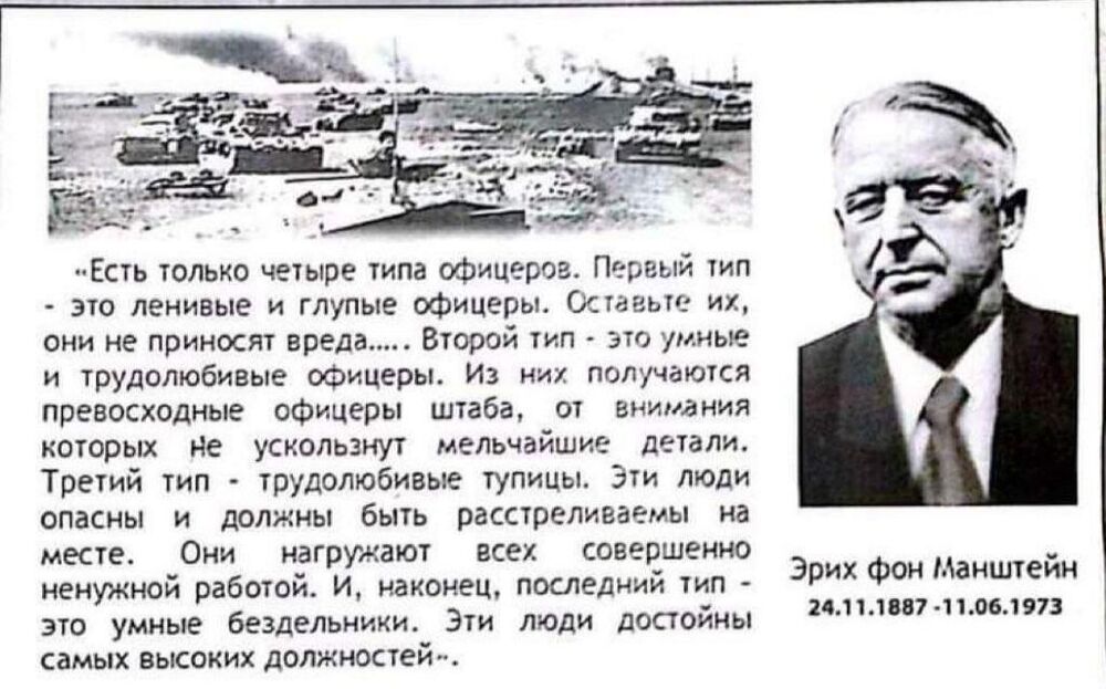 Уважаемый Евгений Федорович, вражеский полководец дал краткую характеристику офицерскому корпусу, разбив их на группы.