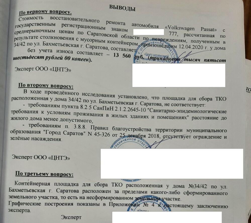 В процессе сбора доказательств выяснилось, что мусорный бак, принадлежит организации ООО «Т», которая дислоцируется в 1000 км от Саратова — в г. Екатеринбург. Эта же организация занимается и осуществляет транспортировку ТКО с площадки, на которой находился несчастный мусорный контейнер.