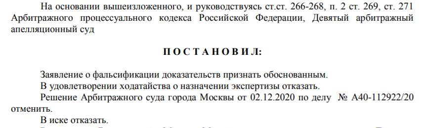 | 1. | A40-112922-2020_20201228_Postanovlenie_apelljacionnoj_instancii | 300.3 KB | 23 | |||