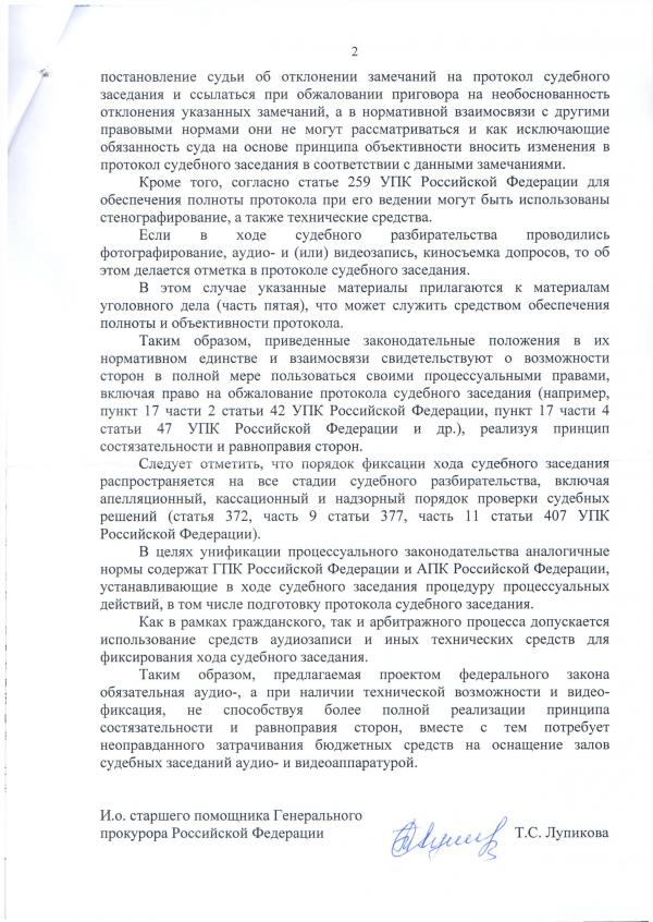 Прилагаемый законопроект устанавливает систему объективной фиксации хода судебного разбирательства, и исключает саму возможность фальсификации протоколов судебного заседания, обеспечивает их полную достоверность и объективную проверку.