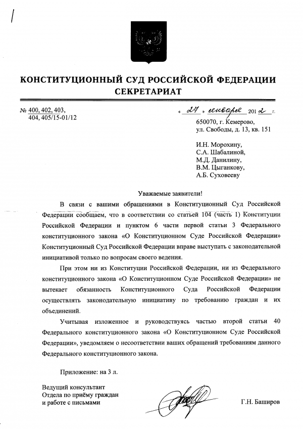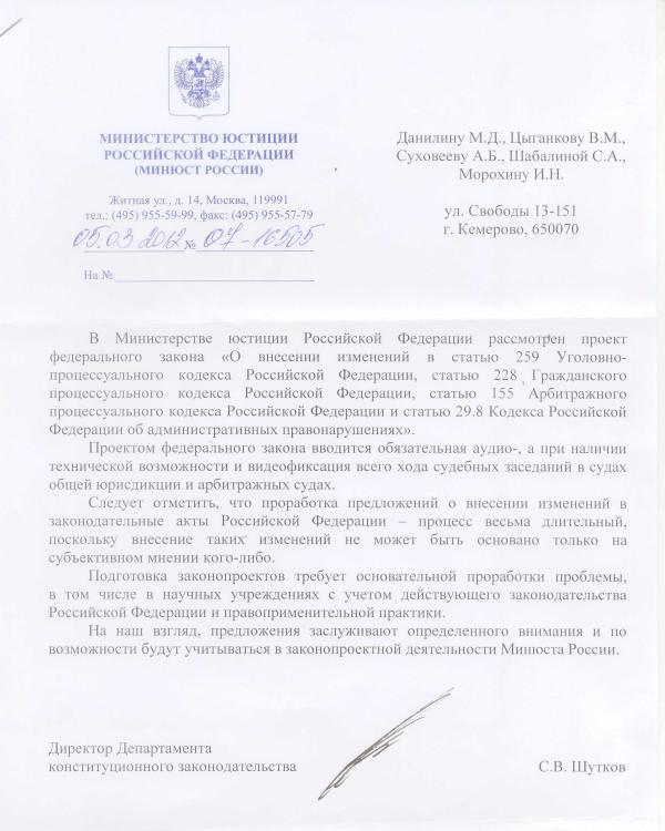 Только что получил ответ из Департамента конституционного законодательства Минюста.